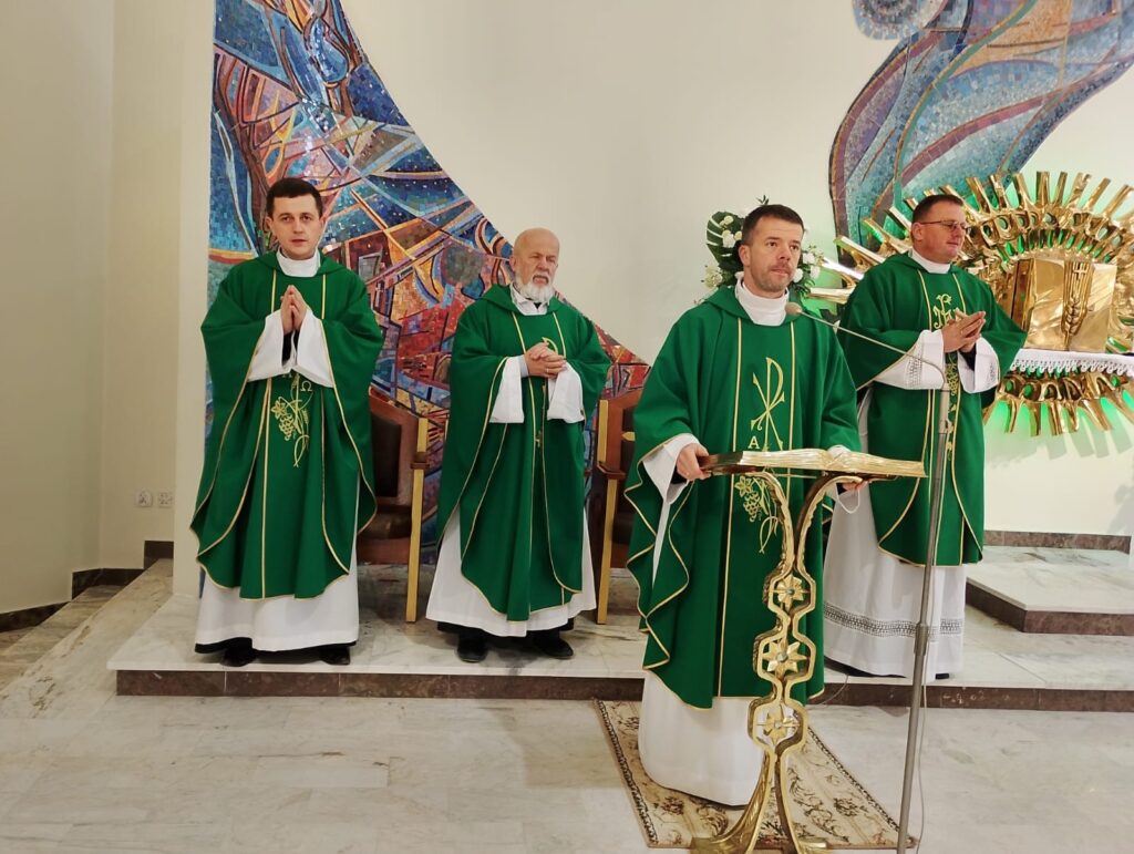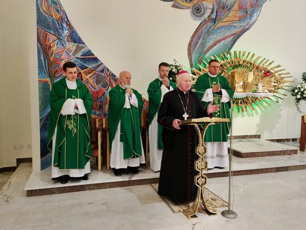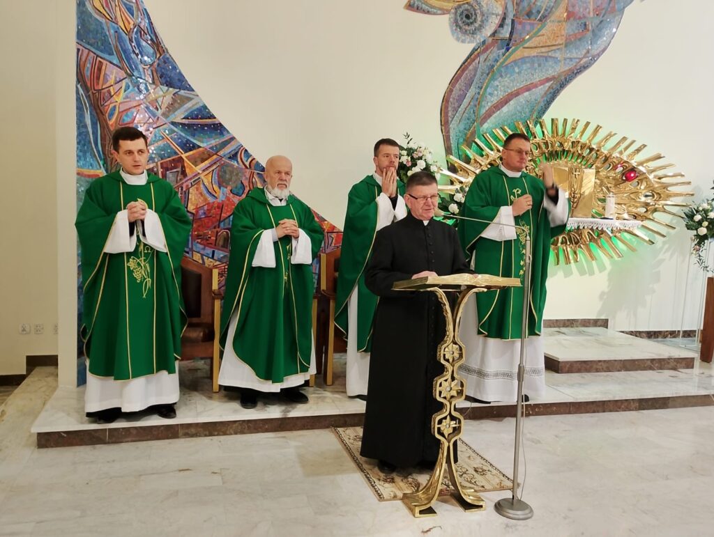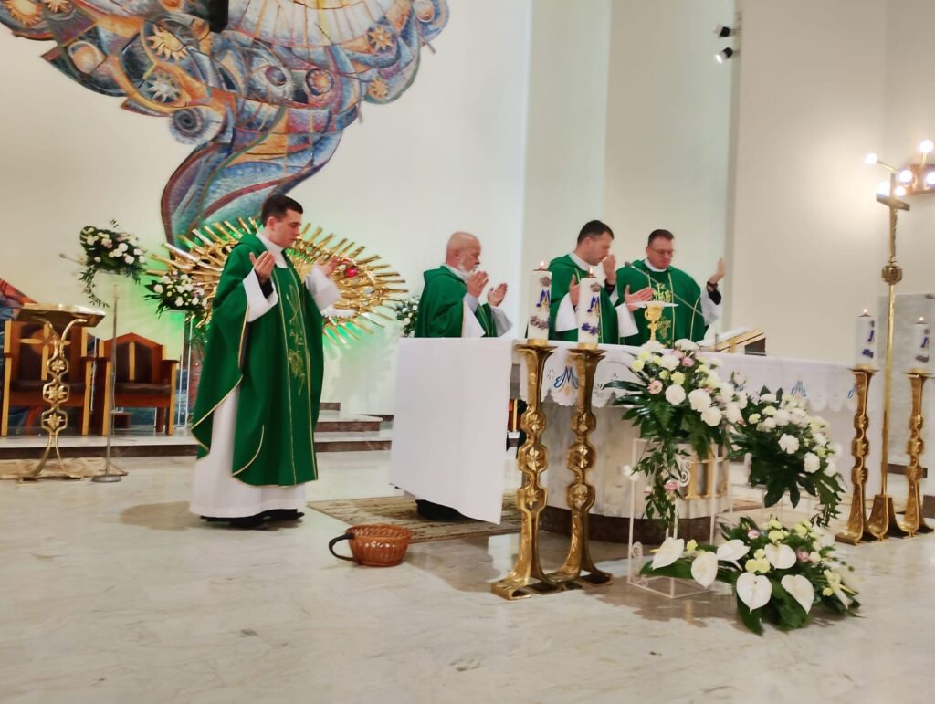 Spotkanie rozpoczęło się uroczystą Eucharystią, której przewodniczył ks. Michał Kozak, natomiast Słowo Boże wygłosił przewodnik grupy – ks. Krzysztof Szybiak. Po zakończonej Mszy Świętej ks. Łukasz Staszewski, w imieniu księdza proboszcza, zaprosił wszystkich uczestników do dolnego kościoła, gdzie wspólnie odmówiono Koronkę do Bożego Miłosierdzia, prowadzoną przez ks. abpa Adama Szala.