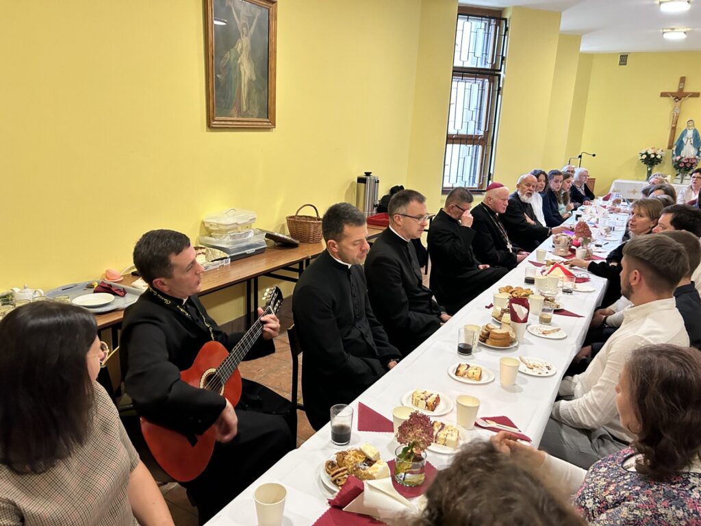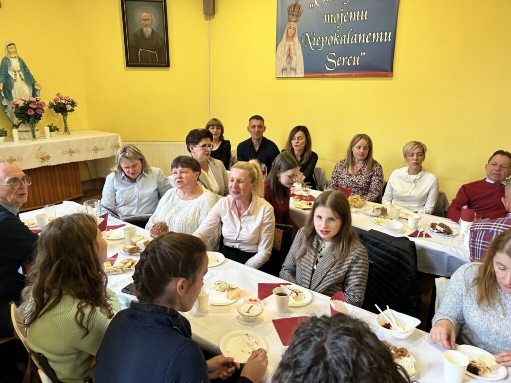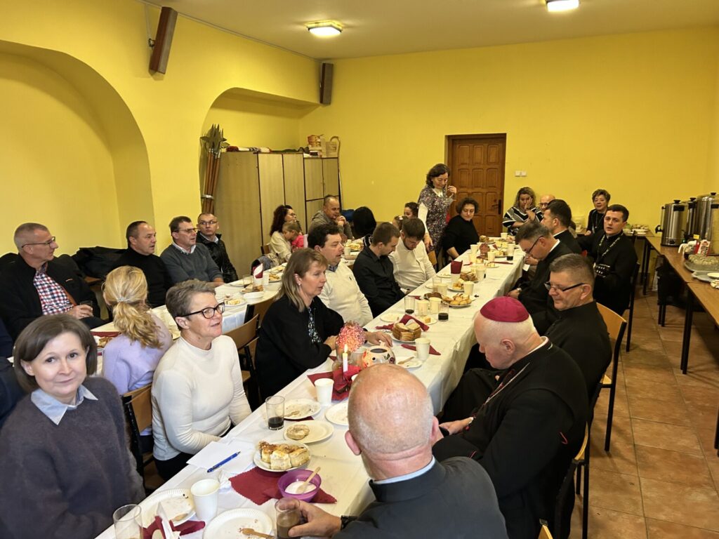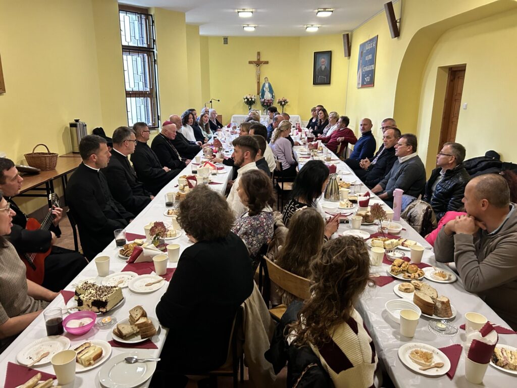 Po modlitwie nadszedł czas na radosne spotkanie przy wspólnym stole – uczestnicy mogli pokrzepić się gorącą zupą i domowymi ciastami, dzieląc się wspomnieniami z pielgrzymkowej drogi i wdzięcznością za wspólnotę, która trwa przez cały rok.