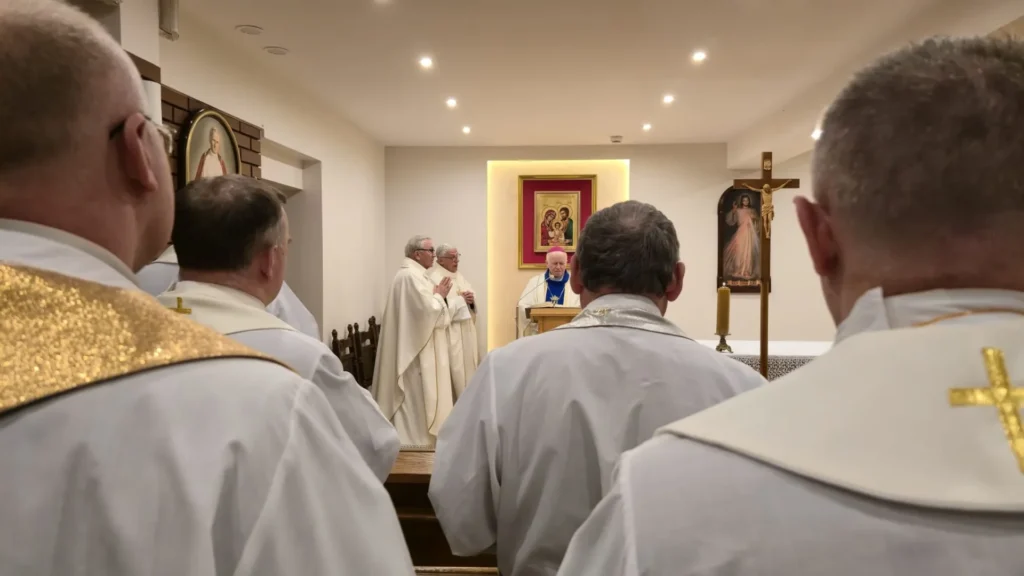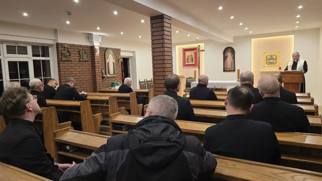 To właśnie dla tych księży, w czwartek – 12 lutego 2026 r., w Domu Rekolekcyjnym „Nazaret” w Heluszu odbyło się spotkanie modlitewno-formacyjne, podczas którego mogli uklęknąć na modlitwie przed Najświętszym Sakramentem, wysłuchać konferencji i Słowa Bożego, a także usiąść razem przy stole, aby trwać we wspólnocie.