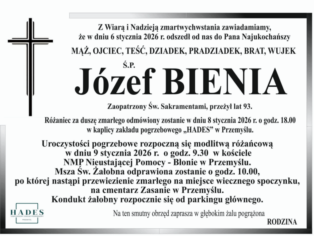 W dniu 6 stycznia 2026 r. zmarł Józef Bienia, tato ks. Andrzeja Bieni, dyrektora Rozgłośni Archidiecezji Przemyskiej Radio FARA.